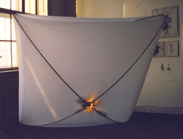 Materiál: technická tkanina, kov, světlo, balónky, časový spínač